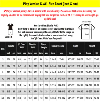 📌Player version jerseys have a slim fit with stretchability. Please note that actual sizes may run slightly smaller, so we recommend buying ONE size larger for the best fit. ⬆ ⬆ strong or overweight, go up TWO size!